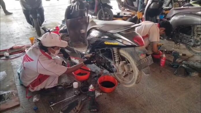 Selain servis, mekanik juga memberikan edukasi singkat kepada pemilik motor mengenai langkah perawatan lanjutan setelah kendaraan terendam banjir.