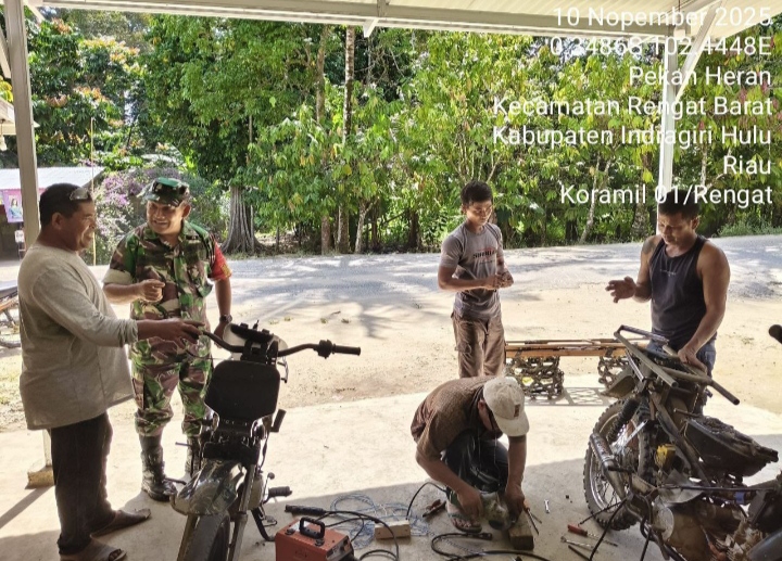 Bhabinkamtibmas Desa Sukadana Sambangi Bengkel Dika Merta Motor, Sampaikan Pesan Kamtibmas kepada Warga