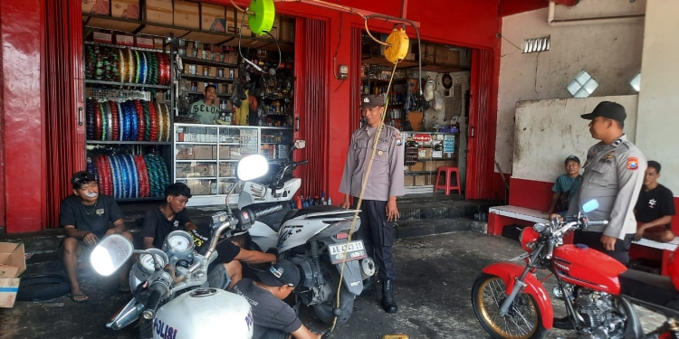 Menekan Penggunaan Knalpot Brong, Polsek Ujungpangkah Sisir Bengkel Sepeda Motor